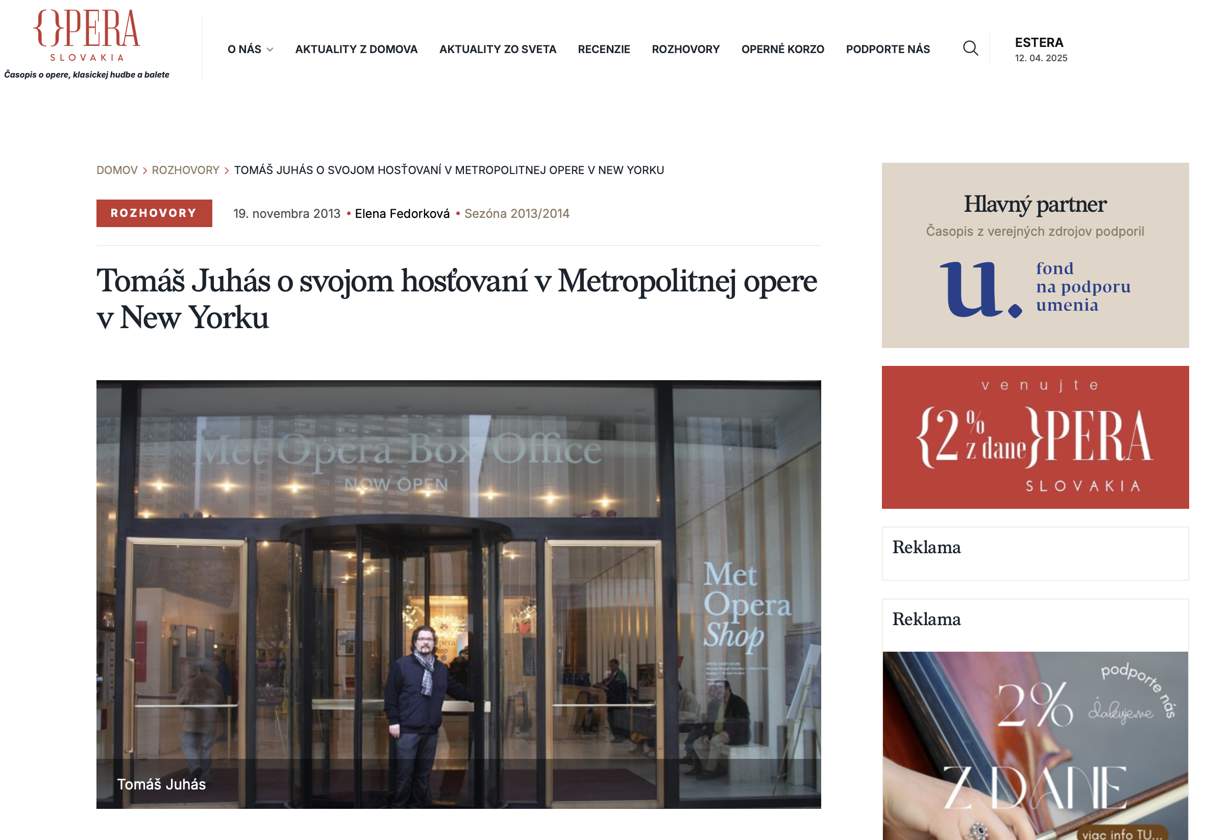 Opera Slovakia -Štefan Kocán opäť v Metropolitnej Opere v New Yorku
